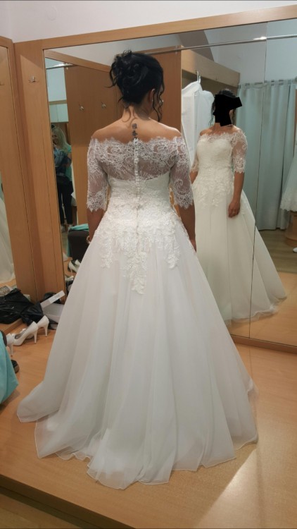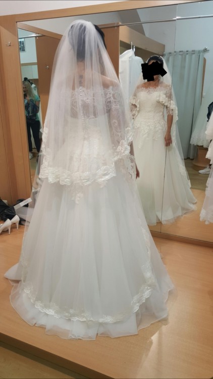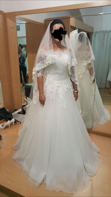 Witam serdecznie, sprzedam piekna suknie rozm 36/38 na wzrost 165+ obcasy 7cm. Suknia kupiona zostala w krakowskim renomowanym sklepie wraz z dodatkami: dlugi welon, koronkowe bolerko, halka z kolem. Calosc kosztowala 4000pln. Suknia sklada sie z recznie wyszywanego perlami gorsetu pokrytego koronka, zapinana na zamek i haftke (bardzo dobrze suknia trzyma sie na ciele, nie opada) dolna czesc gladka, na niewielkim kole ukladajacym suknie w litere A. Bardzo duza swoboda ruchow. W cenie bolerko zapiname z tylu guzikami-perlami z identycznej koronki jak ta na gorsecie oraz dlugi welon obszyty ta sama koronka. Calosc idealnie ze soba wspolgra, wywolujac zachwyt. Wiecej informacji oraz zdjec chetnie wysle na maila. Zapraszam zainteresowane przyszle panny mlode do kontaku :)
