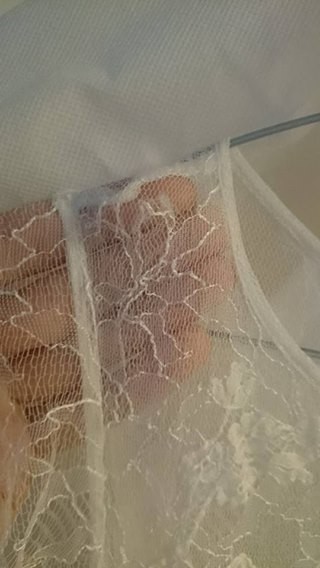 Uszyta na 172 + 6 cm, wymiary: 83 w biuście, 65 w talii. Wykonana jest z bawełnianej koronki i szyfonu jedwabnego.