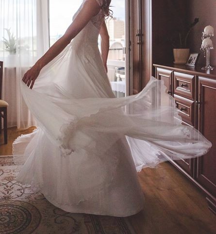 Bardzo wygodna i leciutka, nie czuje się że ma się ją na sobie. Przepięknie powiewa w tańcu jak i podczas chodzenia. Zrobiła ogromne wrażenie na gościach.