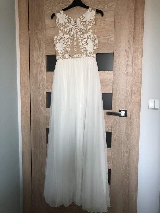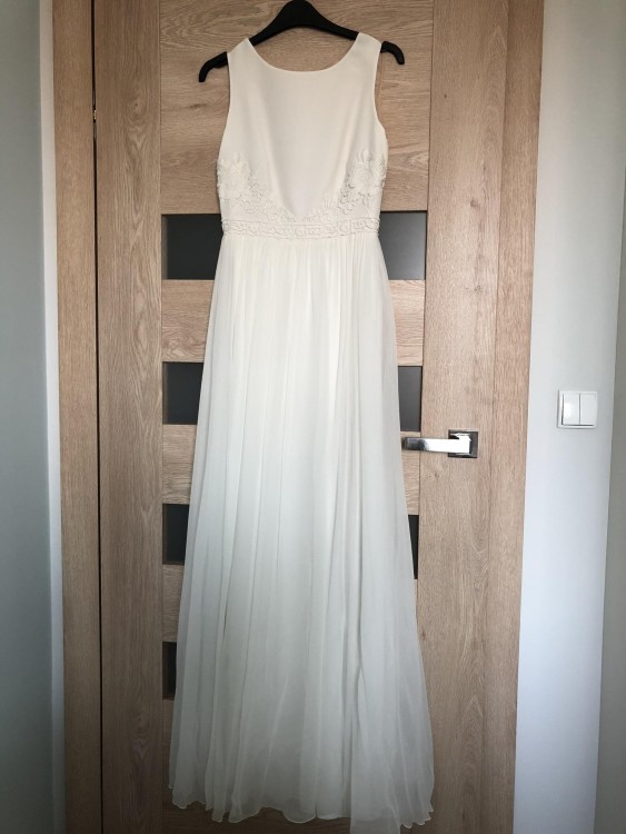 Suknia STELLA zakupiona we wrześniu 2018r. w salonie w Warszawie - rozmiar 36/38, 167cm+8cm obcas. Lekka, zwiewna, bardzo wygodna.