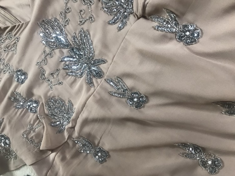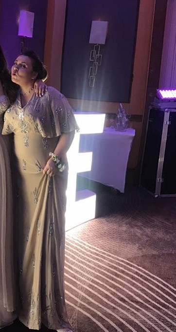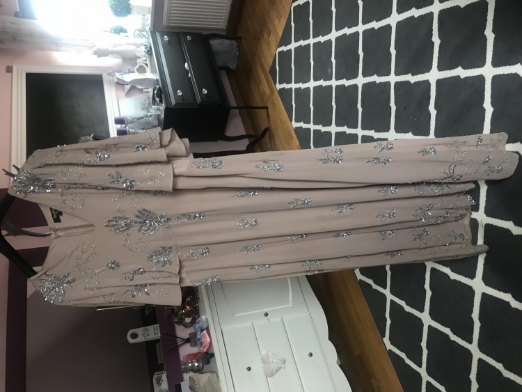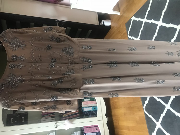 Suknia kupiona w kwietniu 2017 r za pośrednictwem firmy ASOS rozmiar 26 czyli 54 wszystkie wymiary mogę podać osoba zainteresowanym. Kupiłam ja za 120funtow