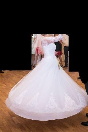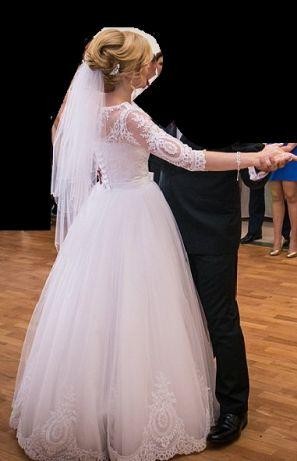 W cenie suknia +krotki i długi welon.