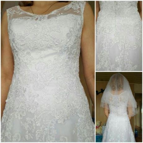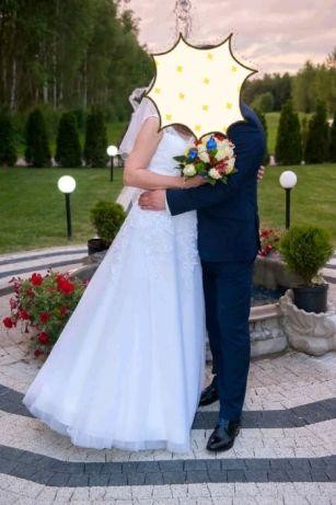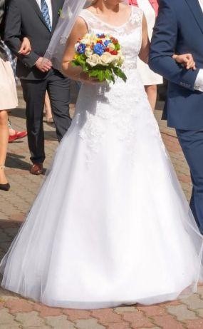 Suknia ślubna biala. Rozmiar 38, na wzrost 168/170. Fason sukni to litera A.