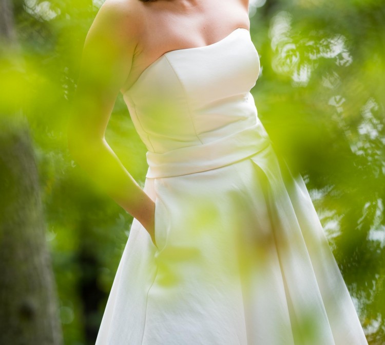 Suknia jest wygodna, posiada dwie kieszenie nadające sukni ponadczasowy charakter.