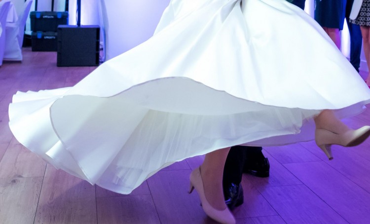 Suknia wyprana i wyprasowana w profesjonalnej pralni, gotowa do użycia.