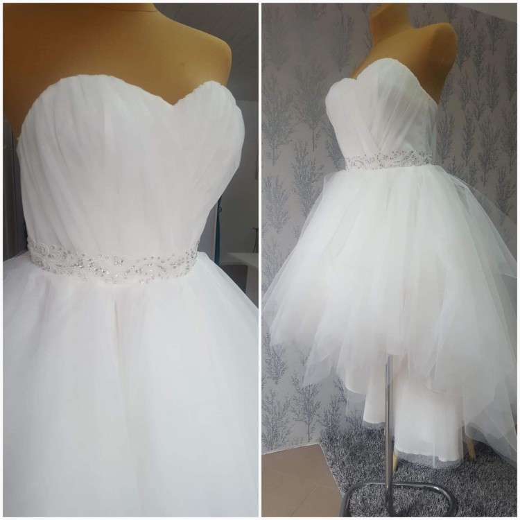 Sukienka uszyta dla Pani Młodej na poprawiony. Rozmiar 42. Założona raz, w zasadzie na chwilę .