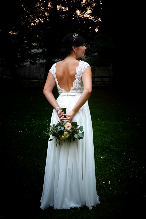 Suknia ivory z kryształami Swarovskiego i plecami V