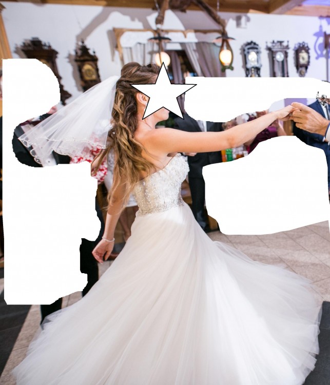 Dorzucam gratisy: welon + koło+ tiulowe ramiączka, które można odpiąć.