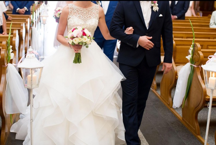 Oferuję na sprzedaż moją prześliczną suknię ślubną, oryginalną, firmy Justin Alexander z ekskluzywnej kolekcji SIGNATURE w kolorze ivory (kość słoniowa, śmietankowa biel) w rozmiarze pomniejszane 34 dopasowywana na wzrost 163 cm + 7cm buty. Talia ok. 65cm, biust ok. 86cm.