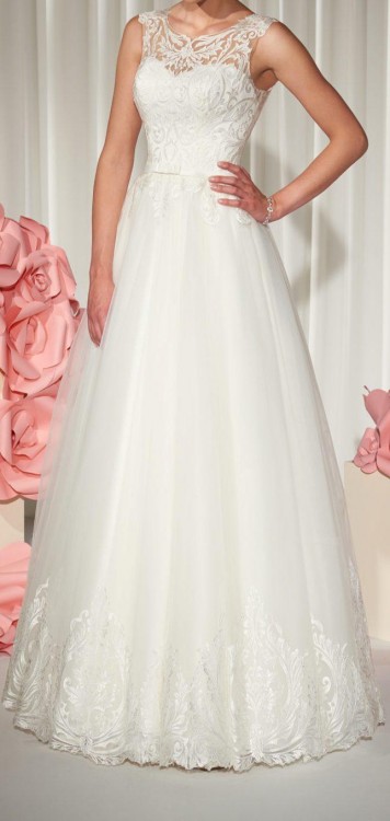 Suknia z miękkiego włoskiego tiulu. Kolor śmietankowy. Koronka wykonana z jedwabnej nici nadaj sukni szlachetność. Na plecach koronka położona jest na siatce idealnie dobranej do koloru skóry. Uszyta na wzrost 168cm + 6cm obcas. Dla własnej wygody miałam halkę wraz z kołem, lecz nie jest to konieczne. Nie ma wszytego stanika ponieważ nie było takiej potrzeby. Bardzo wygodna, nie krępuje ruchów. Koronkę na dole można odpruć (przymocowana na specjalnej żyłce), suknie skrócić i przyszyć koronkę jeszcze raz. Stan idealny. Posiadam również piękny 3-metrowy welon, z możliwością zakrycia twarzy. Zapraszam do telefonicznego kontaktu zawsze po godzinie 20. Tel. 669402565. Możliwość przymierzenia w Tarnowie.