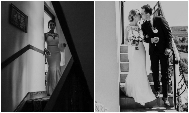 Elegancka suknia wzorowana na kolekcji BERTA z salonu Madonna w Krakowie.