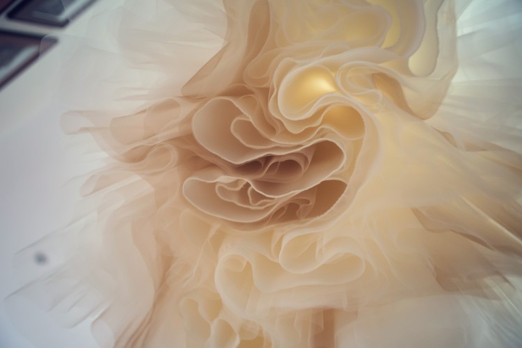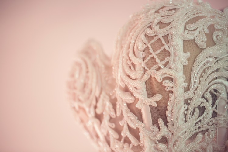 Suknia posiada górę wykończoną koralikami oraz cekinami, dół to kilka warstw tiulu z czego druga warstwa jest w kolorze cappuccino.