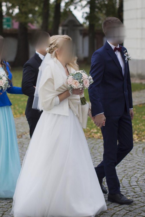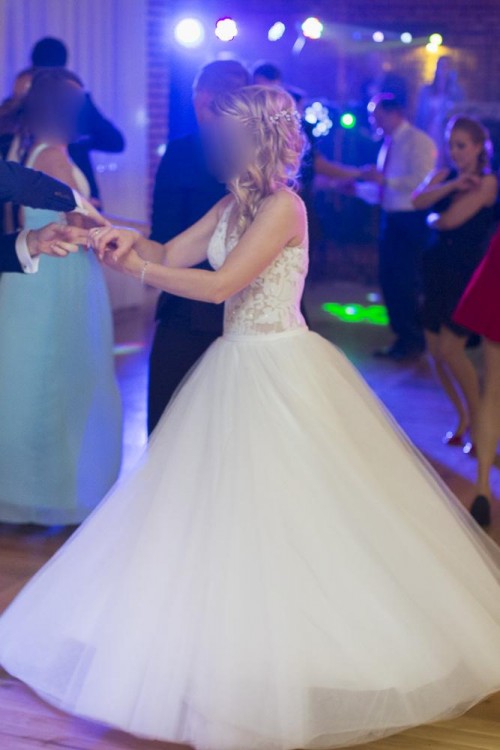 Suknia ślubna z kolekcji 2017 Lanesta model Quartz kolor Ivory w rozmiarze 36 na wzrost 165 +9cm obcas. Góra sukni wyszyta mieniącymi się cekinami, usztywniana z wszytymi miseczkami piękne wyszczupla talię i podtrzymuje piersi. Dół złożony z kilku warstw lekkiego tiulu. Tył w literę V wydłuża i wyszczupla sylwetkę. Możliwość przymiarki w Białymstoku, Bielsku Podlaskim oraz Suwałkach. W Białymstoku polecę wspaniałą krawcową, która dokona ewentualnych poprawek. Suknia po praniu. Zapraszam na przymiarkę.