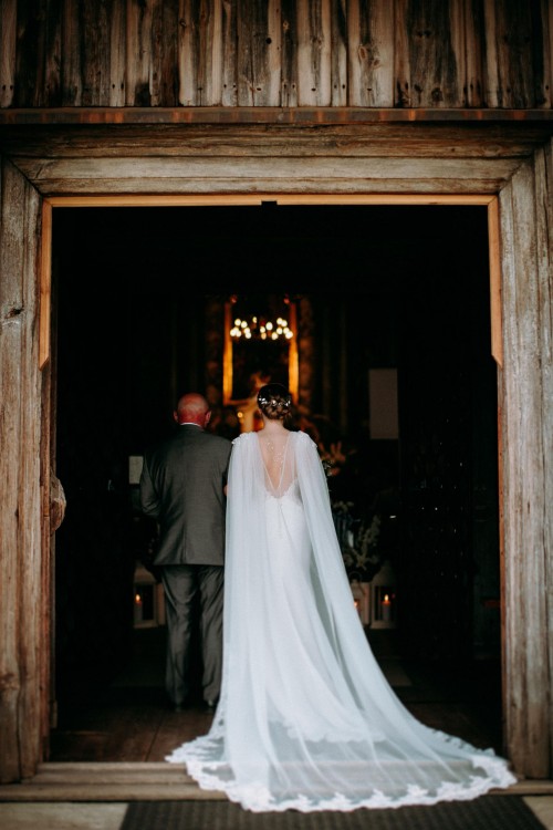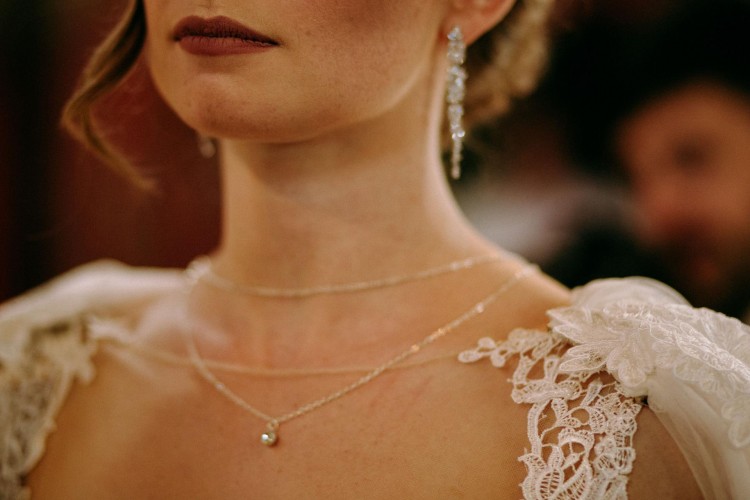 W komplecie polecam tiulową pelerynę długości ok 1.5 m wykończoną koronkowym obszyciem, którą mocuje się do ramion sukni za pomocą podwójnego zapięcia (agrafki z zabezpieczeniem) zamaskowanym koronką. Bardzo oryginalna i piękna alternatywa dla tradycyjnego welonu.