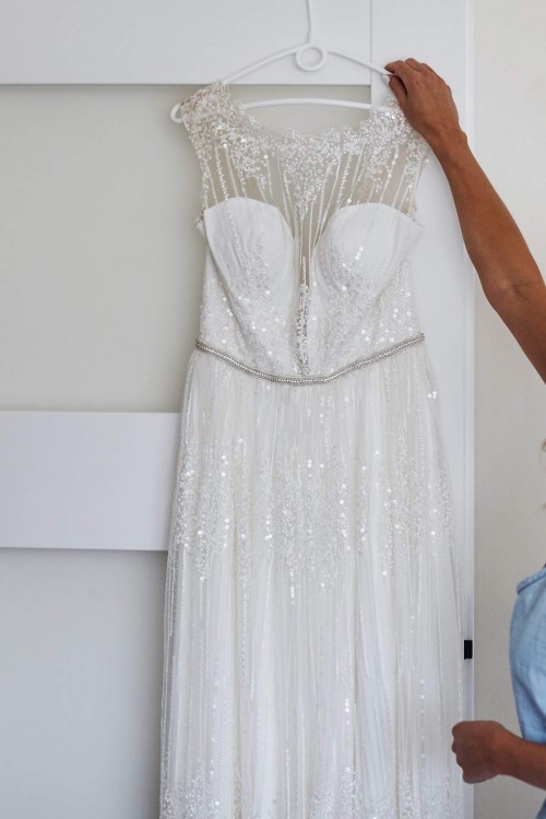 Suknia w bardzo dobrym stanie, założona na ślub/wesele oraz sesje plenerową.