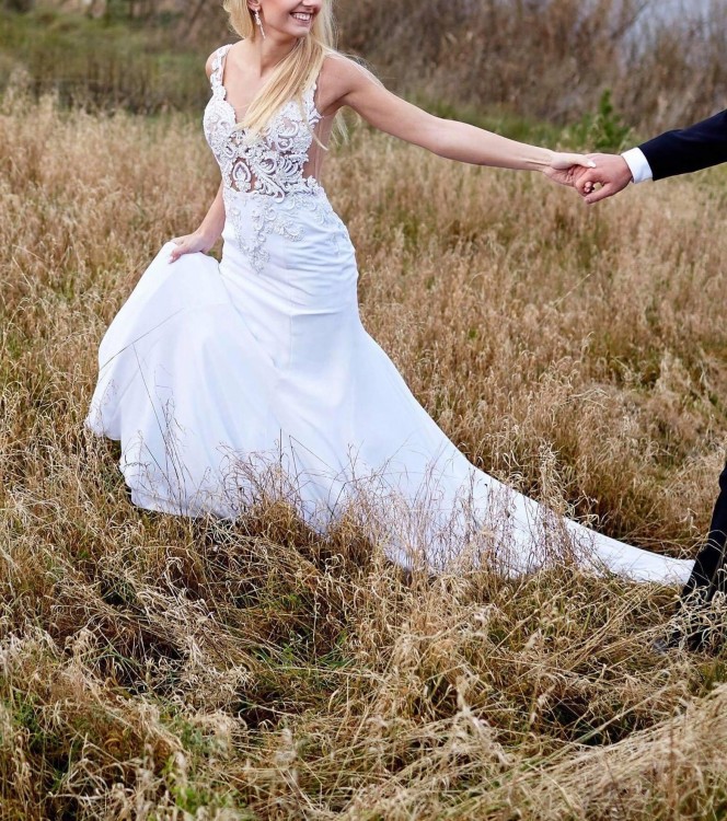 Sprzedam suknie ślubną białą nieco zmieniona forma oryginału na własną wizję .