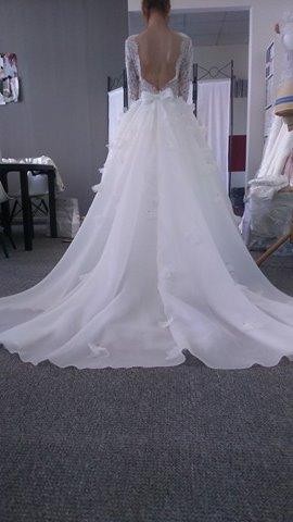 Zjawiskowa suknia,francuskie koronki,szyta na zamówienie z mojego projektu.Trój wymiarowe płatki + tren.Nie ma piękniejszej-unikat