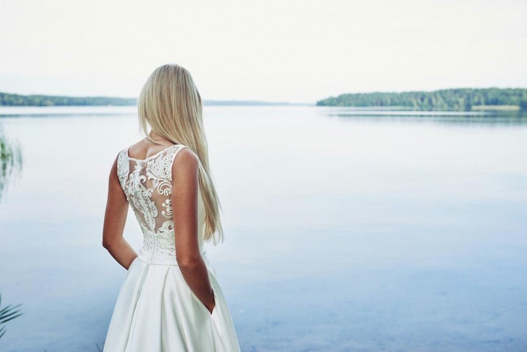 Suknia ślubna Mystic Osteria 2017, klasyczna, elegancka z ciekawą koronką na plecach, rozm. 36.