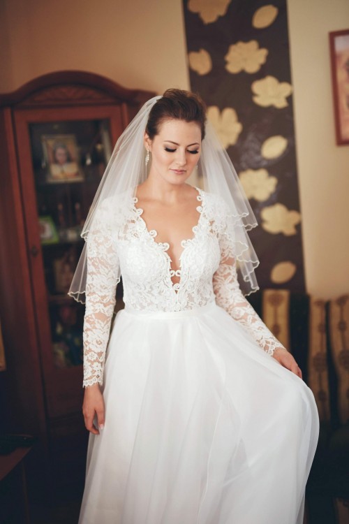 Suknia z welonem kosztowała 3300 mogę odsprzedać za 2000 zł i opuścić 200 zł na poprawki bo była obcinana kilka cm podczas ślubu i jest po prostu trochę popruta i trzeba by było ją podszyć.