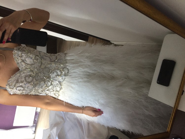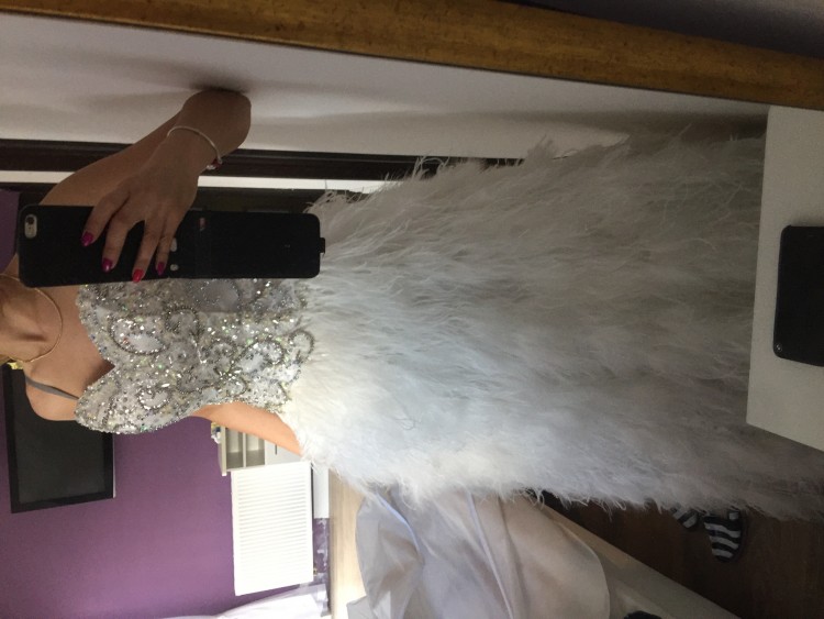 do sprzedania posiadam przepiękną suknię ślubną użytą oczywiście tylko jeden raz , z naturalnych piór strusich efekt wow gwarantowany . Góra : bogato zdobiony cudnie mieniący się gorset zasuwany na kryty zamek z boku , Biust wyposażony w dodatkowy push-up , moża w razie potrzeby wyciągnąć. Do sukni moża dopiąc ramiączka oraz podpiąć dól . Dól sukni pokrywają naturalnie powiewające strusie pióra ułożone na dwóch warstwach tiulu, dodatkowo haleczka. Po mino wszelkich zdobień suknia jest lekka i niepowtarzalna .Identyczną suknie miała na sobie Miss Polski bodajże w roku 2014r tylko w kolorze pudrowego różu. suknia zakupiona w salonie Madonna w Krakowie za promocyjną cenne 4500 zł .Zapraszam panie zainteresowane do kontaktu( chętnie odpowiem na wszystkie pytania) bądź na przymiarkę . Prezentuje się zjawiskowo .