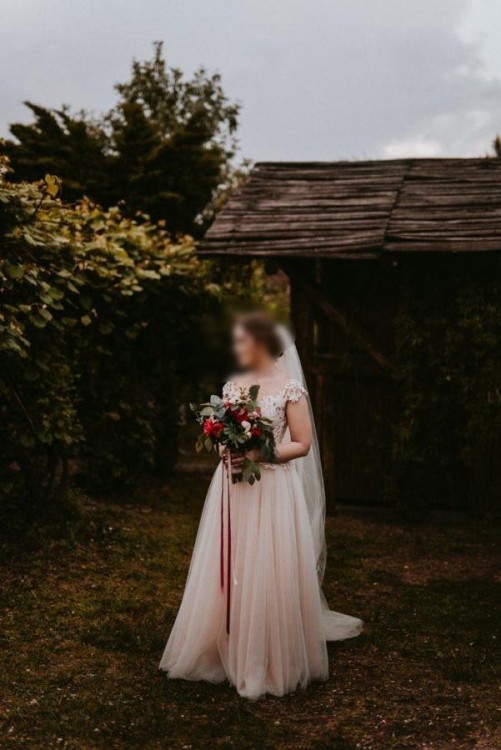 Sprzedam suknię Papilio 1746 Lora z kolekcji Wings of Love, rozmiar 36/38. Suknia piękna, lekka, bardzo wygodna. Dół wykonany z kilku warstw tiulu w odcieniach beżu, moreli i różu. Góra dopasowana, wykonana z pięknej, wysokiej jakości koronki, podszytej niewidoczną siateczką. Wszyte są miseczki, dzięki czemu nie trzeba szukać stanika, choć wszycie dodatkowych miseczek/wkładek jest możliwe. Z tyłu piękny rząd perłowych guziczków. Założona przeze mnie jedynie na ślub i krótkie wesele, bez sesji zdjęciowej.