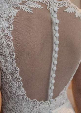 Suknia nie ma żadnych wad, dziur czy też zabrudzeń. Koronka jest w idealnym stanie - żadnych zaciągnięć itp.