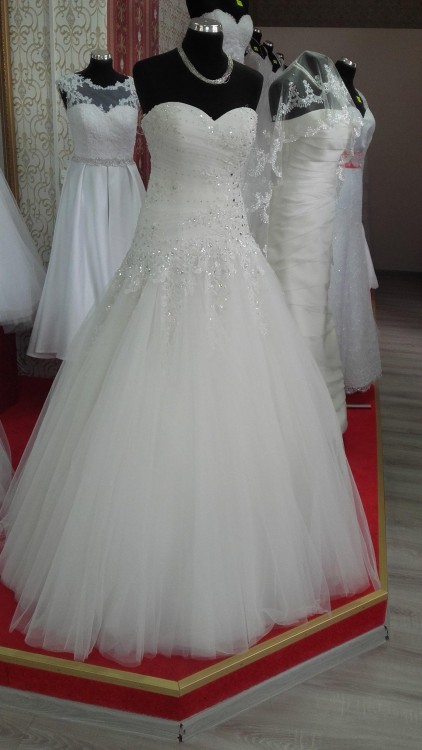 Sprzedam piękne suknie ślubną. Marka princess . Kolor bialy. Model 1653. Wzrost 171. Obcas 8. Rozmiar 40/42. Gorset sukni ozdobiony krysztalkami svarowskiego. W zestawie suknia ślubna podwiazka halka+ koło bolerko. Wszystko uprane i uprasowane. W bardzo dobrym stanie. kupiona w sklepie Vivien. Cena katalogowa 2900zł.