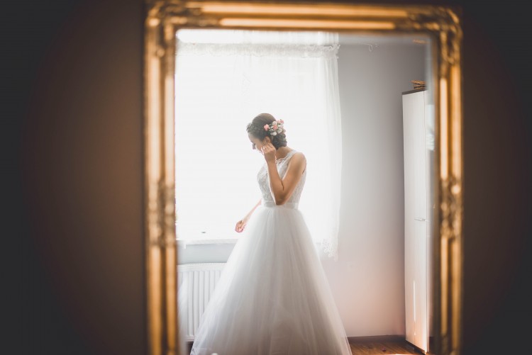 Sprzedam cudowną suknię typu princessa szytą na miarę u krawcowej. Suknia została uszyta na wzrost 174cm + 8 cm obcas. Rozmiar 38. Posiada ona gorset zapinany na zamek. Gorset jest obszyty piękną koronką. Dół sukni został obszyty kilkoma warstwami tiulu, jedna warstwa jest poszarpana. Suknia nie była czyszczona w pralni chemicznej, dlatego też, cena ulegnie obniżeniu. Do sukni dołączam koło oraz piękny tren, który jest odpinany.