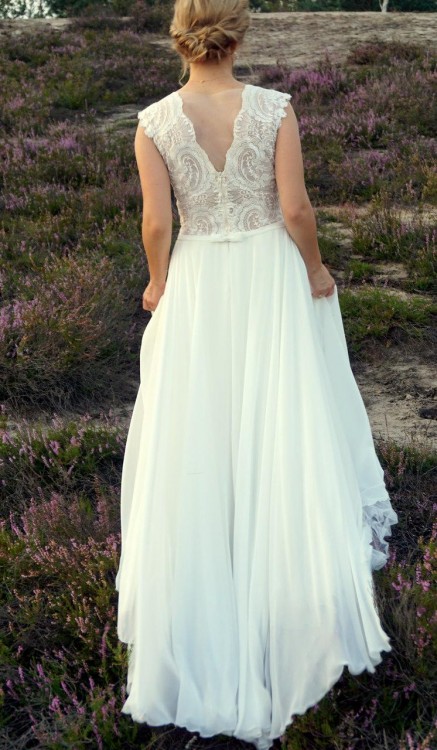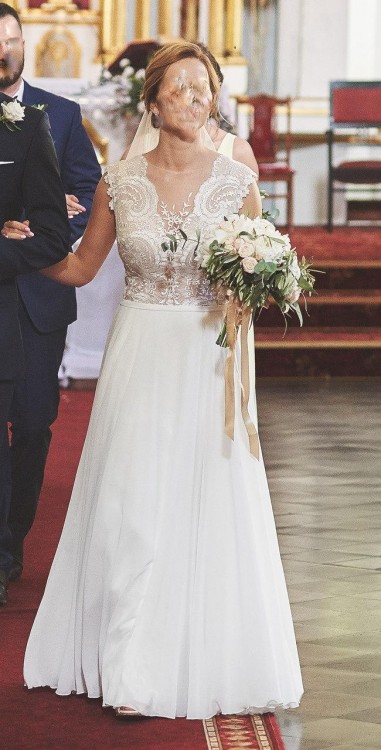 -Z tyłu zostawiony jest lekki podpinany tren, który można obciąć u krawcowej