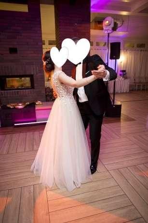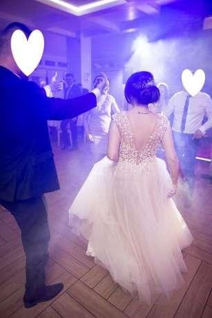 Sprzedam piękną suknię ślubną Jasmine z najnowszej kolekcji Justyny Kodym. Dół ma odcień delikatnej brzoskwini dzięki wymieszanym kolorom tiulu ( 5 warstw tiulu oraz podszewka). Góra sukni wykończona jest elegancką, ręcznie wyszywaną koronką. Sukienka wykonana jest bardzo starannie i nie nosi śladów użytkowania, Zrobiła ogromne wrażenie, jest bardzo oryginalna i dziewczęca. Jej ogromnym plusem jest to, że jest bardzo lekka i wygodna, co ułatwia zabawę do białego rana. :)