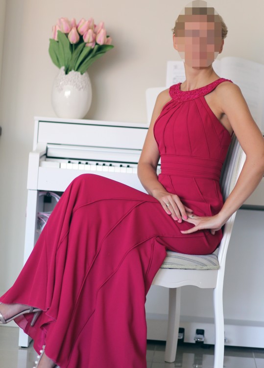 Piękna suknia hiszpańskiej marki Pronovias, zakupiona w olsztyńskim salonie ślubnym LaLila. Wystąpiła ze mną jedyny raz w roli świadkowej na ślubie brata :-) Laura jest koloru cerisse, co najbardziej przypomina kolor amarantowy, a w zależności od światła przechodzi od maliny do fuksji. Rzetelnie uszyta z troską o każdy detal, na podszewce, z ręcznie wyszywanymi aplikacjami, jednocześnie z możliwością dopasowania długości oraz regulacji ramiączek w zależności od wysokości nowej właścicielki. Długość całkowita na dzień dzisiejszy to ok.157cm, biust ok.90cm, talia ok.66cm, biodra ok.92cm. Zapraszam na przymiarki :-)