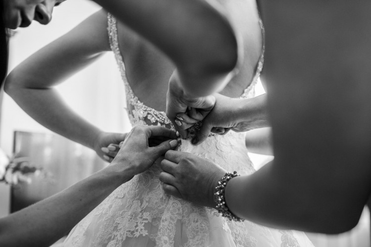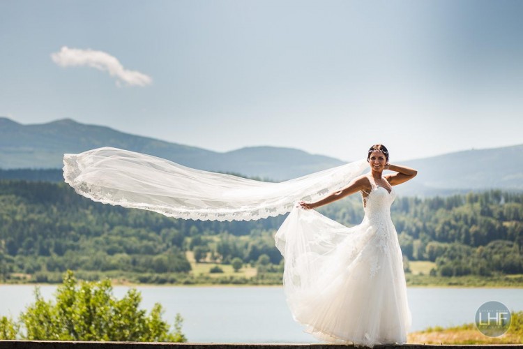 Suknia pięknie prezentuje się zarówno podczas ceremonii, jak i podczas zabawy (wdzięcznie układa się w tańcu), jest bardzo wygodna. Bardzo ładnie wychodzi na zdjęciach, wtedy doskonale widać wzór koronki na tiulu.