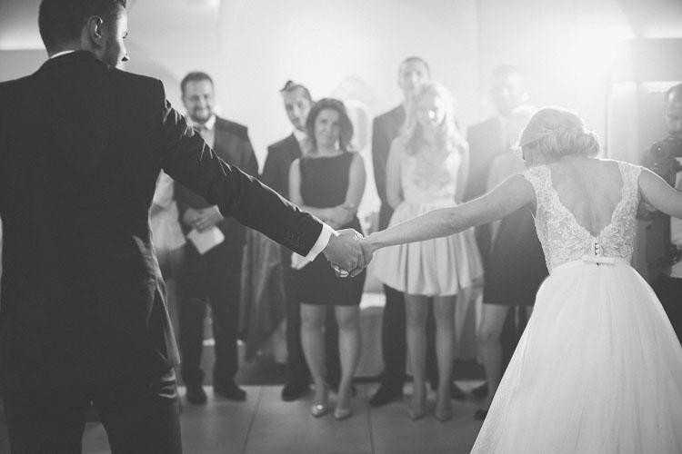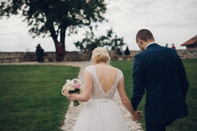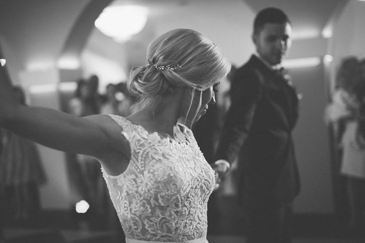 Suknia ślubna jest piękna, delikatna i lekka. Dzięki halce z kołem, pięknie układa się podczas tańca i powoduje, ze wygląda się jak księżniczka. Plecy wykończone są dekoltem w kształcie litery V oraz delikatną, drobną koronką.