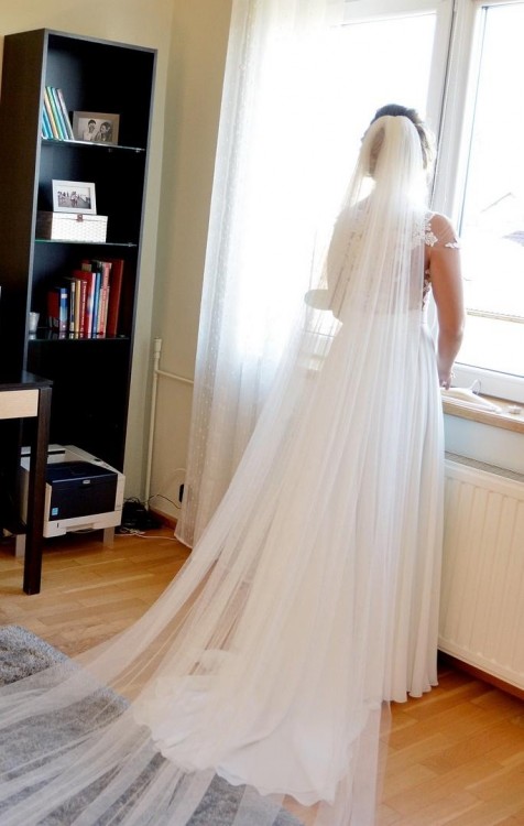 Dorzucam w gratisie długi 3-metrowy gładki welon, który widać na zdjęciach.