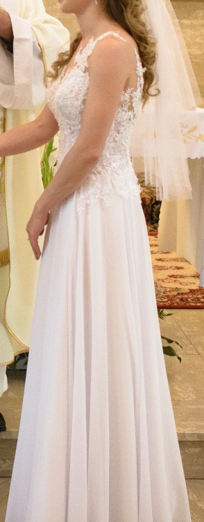 Witam, mam do sprzedania piękną suknię ślubną. Została uszyta w salonie Chassmi w Tomaszowie Mazowieckim za 2900zł, szczegóły: suknia SHAKIRA przerobiona - odsłonięte plecy, muślinowy dół. Długość - na wzrost 160cm + obcas (8cm), z delikatną niewidoczną siateczką. Kolor BIAŁY. Cena do negocjacji. Mam więcej zdjęć sukni, robione w ostatnich dniach, chętnie wyśle zainteresowanym, gdyż więcej nie mogę dodać w ogłoszeniu.