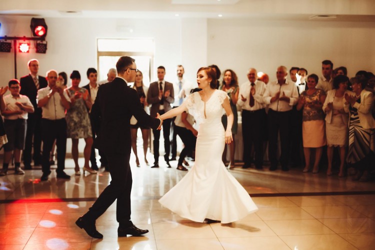 Po bokach zostały wszyte godety, które pięknie prezentują się podczas tańca.