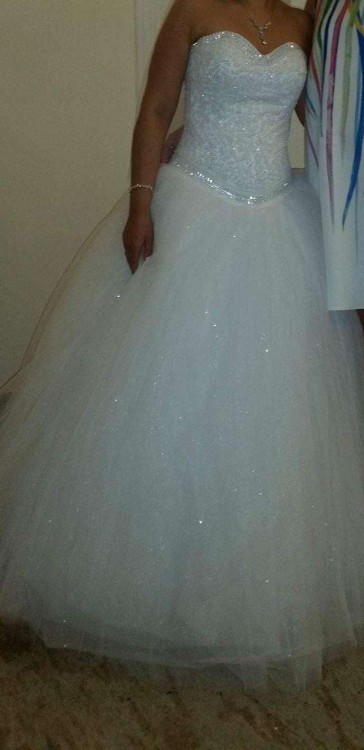 Sprzedam suknię ślubną w kolorze białym, kupioną w salonie Mona Lissa. Rozmiar 32-34 ale będzie też pasować na 36/38, ponieważ jest wiązana z tyłu. Suknia była skracana na wzrost 160, + 8cm obcas. Sukienka jest w świetnym stanie. W cenie dołączam dwa welony ( długi oraz krótki z drobnymi diamencikami. Zapraszam na przymiarki.