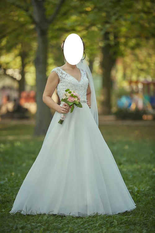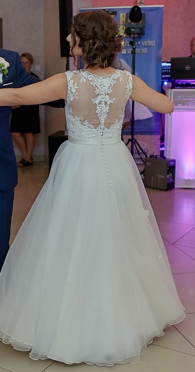 Witam, mam na sprzedaż przepiękną prostą i delikatną suknię ślubną ( rozmiar 34/36) kupioną w salonie Mori Lee model 6836 model z kolekcji 2018, z koronkowym gorsetem w kształcie litery V obszyty kryształkami, oraz z koronkowymi plecami. Dodatkowo satynowy pasek wyszywany kamieniami podkreślający talię. Koło można regulować na wysokość. Kolor Ivory. Suknia na wzrost 157 cm +9 cm obcas, można również wyjąć koło . Po wyjęciu koła sukienka dłuższa. Mam też welon gładki bez obszycia o długości 160 cm.