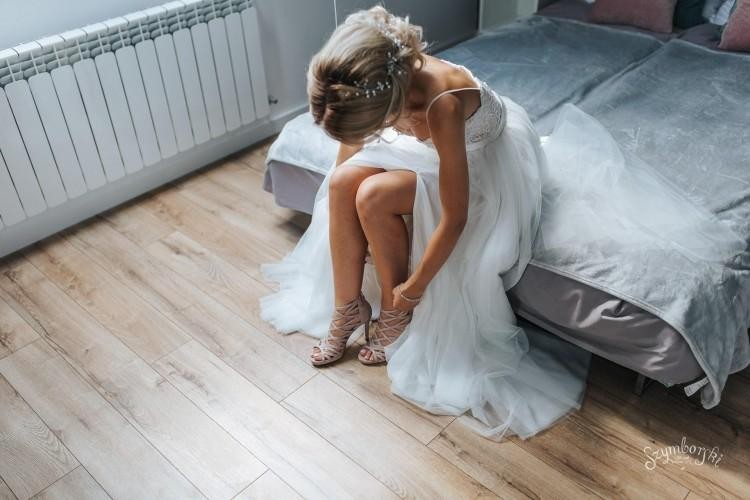 Sprzedam suknię ślubną kupioną w salonie. Rozmiar 32-34 ale będzie też pasować na 36 ponieważ jest wiązana z tyłu. Wysokość: 165 + 8 cm obcas.