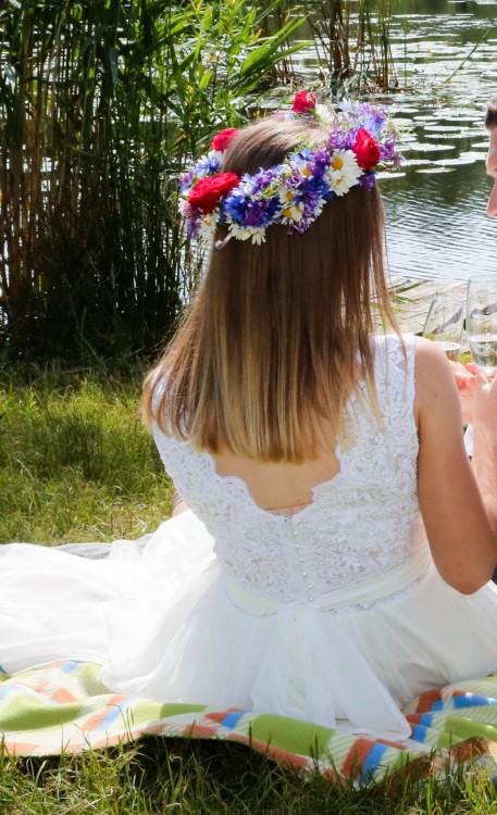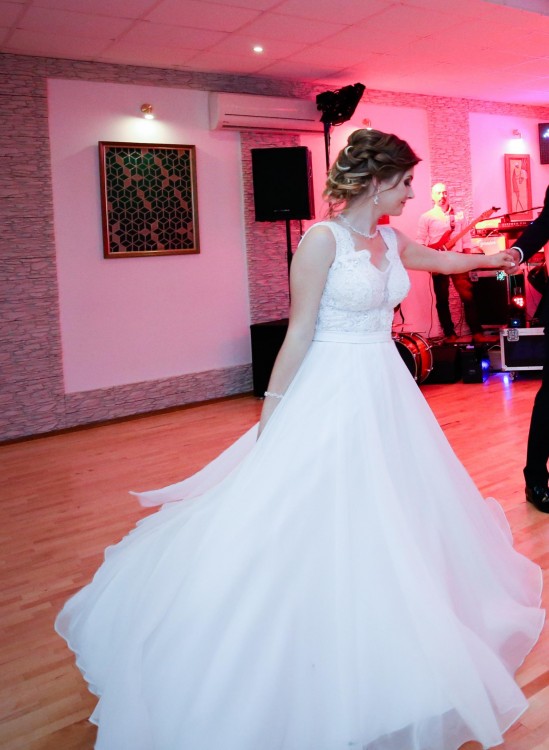 Mam do sprzedania piękną suknię ślubną zakupioną w salonie sukien ślubnych "Diana" w Rzeszowie w kwietniu 2019 roku. Suknia jest w kolorze śmietankowym, szyta na wzrost 164 cm + 7 cm obcas, w rozmiarze s/m (wymiary: biust: 91, pas: 72, biodra: 96). Góra wykonana jest z delikatnej koronki, dół sukni zaś z lekkiego muślinu. Suknia jest bardzo wygodna. Pięknie układa się zarówno z halką jak i bez. Suknia przepasana jest szarfą w kolorze sukni, którą zawiązuje się na kokardę. Stan sukni oceniam na bardzo dobry. Suknia tuż po weselu i sesji ślubnej została wyprana w profesjonalnej pralni chemicznej. Suknia kosztowała 3150 zł + 110 zł (welon). Obecnie suknię wyceniam na 1200 zł. Ponadto do sukni dorzucam krótki welon ślubny oraz etolę ślubną. Wszelkich dodatkowych informacji chętnie udzielę telefonicznie. Serdecznie zapraszam do kontaktu. Suknię można przymierzyć w okolicy Sokołowa Małopolskiego, koło Rzeszowa.