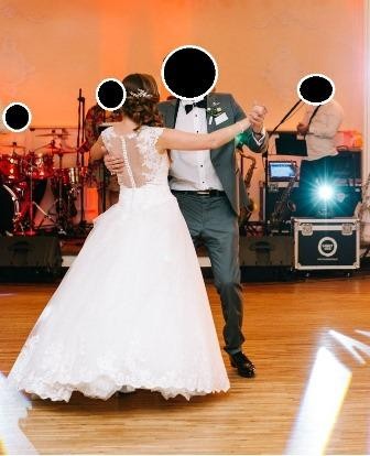 Suknię można dopasować do swojego wzrostu. Piękny krój w kształcie literki A z ozdobnymi plecami zapinanymi na drobne guziczki. Suknia jest lekka i bardzo wygodna, również dzięki temu, że posiada koło z halką z zestawie Suknia jest w dobrym stanie, posiada lekkie ślady użytkowania, które bez problemu można zniwelować . Miałam ją na sobie na weselu i na sesji. Możliwość przymiarki w Łodzi.