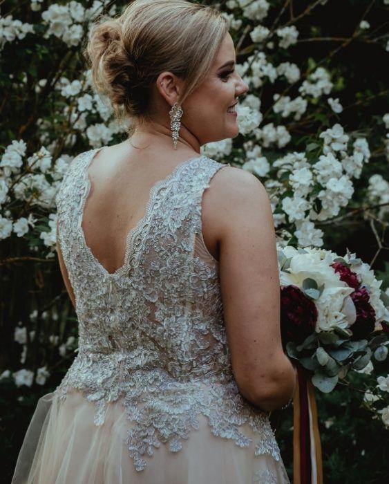 Suknia powstała w Pracowni Sukien Ślubnych Moniki Szpręglewskiej w Grudziądzu.