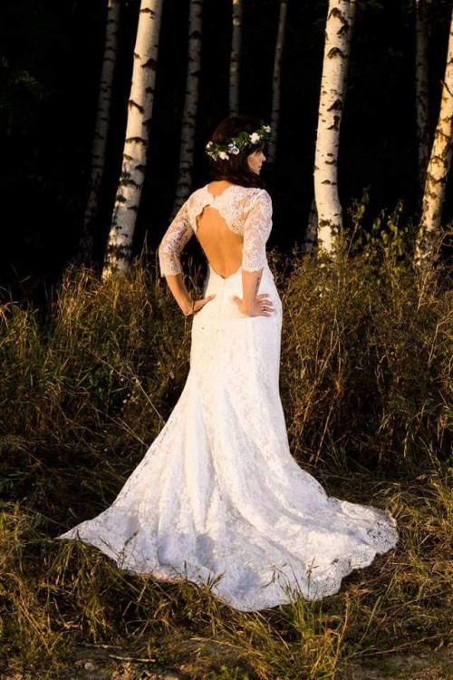 Sprzedam suknię ślubną z kolekcji 2017. Suknia jest cała z koronki, dopasowana z tyłu plecy wycięte oraz tren (podpinany na guziki).