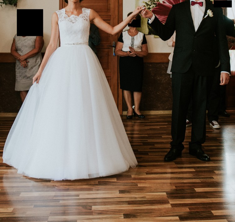 Dodatkowo do sukni dołączam welon, nowe białe buty (rozmiar 38) oraz pokrowiec na suknię.