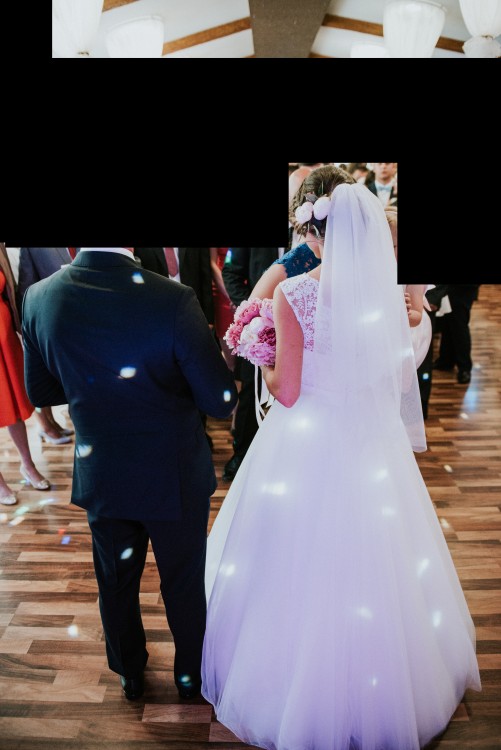 Do sukni dołączam halkę plus 3 koła, które unoszą warstwy tiulu co sprawia, że suknia bardzo ładnie się układa.