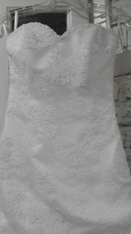 Suknia w idealnym stanie. Bardzo praktyczna, dolna część odpinana. Dodatkowo stylowe bolerko, które wraz z suknią tworzy spójną całość.