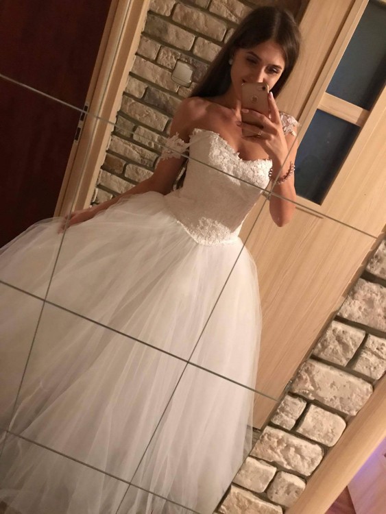 Witam, posiadam na sprzedaż śliczna suknie slubna zakupiona w Poznańskim salonie Visual Chris z najnowszej kolekcji. Dół z wielu warstw tiulu,góra gorsetowa z koronki więc możliwość regulacji, do gorsetu mialam doszyte naramki z koronki, ktore pieknie się prezentowaly, mozliwosc ukrycia bądź odprucia. Suknia pięknie prezentuje się z kołem jak i bez koła. Cena jaką zapłaciłam w salonie to 3500 zl, moja cena to 2400, mozliwa mala negocjacja. Suknia założona 2 razy, jakby pojawiły się jakieś pytania proszę śmiało dzwonić na nr kontaktowy 530 446 829