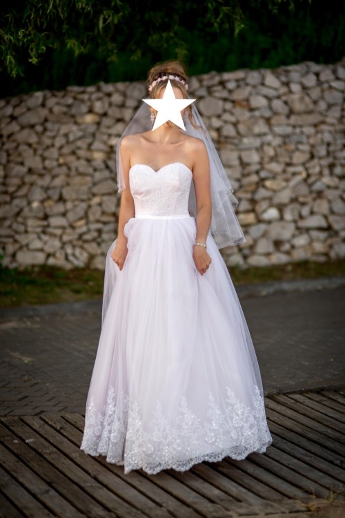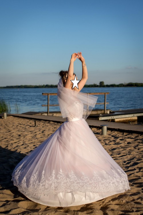 Witam. Mam do sprzedania suknię z 2017 z lekką poświatą różu, które dodaje jej niepowtarzalnego charakteru jak i uroku. Gratis dorzucam welon z delikatnymi kryształkami, tren + halke.