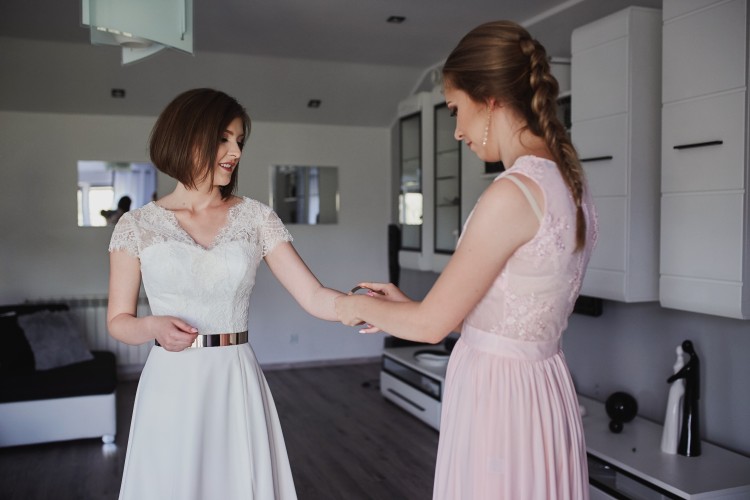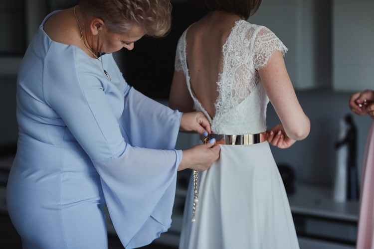 Sprzedam suknię ślubną w rozmiarze 34/36 posiadającą delikatną koronkę u góry i muślinowy prosty dół z rozporkiem. W komplecie jest do niej złoty pasek i bransoletka. Suknia była szyta na miarę w salonie Nani w Olsztynie. Powstała poprzez połączenie dwóch modeli sukien - Marietta Irene (dół i gorset) oraz Love Story Chantal (koronkowy dekold z przodu i z tyłu). Koszt tej sukni to 2500 zł, jednak zależy mi na szybkiej sprzedaży. Suknia jest po wyczyszczeniu w pralni chemicznej i gotowa do przymierzenia w Ollsztynie lub okolicach Chorzel (woj. mazowieckie).