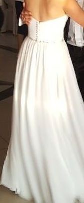 Suknia będzie idealna dla szczupłej kobiety noszącej rozmiar 34-36, o wzroście ok. 160 cm + obcas ok. 7 cm.